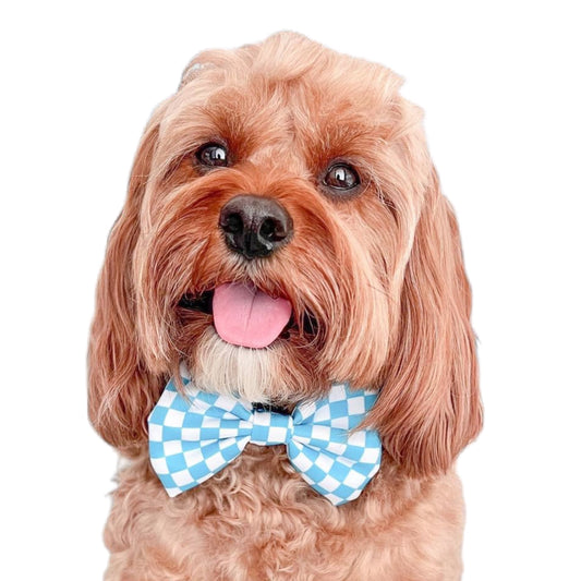 AQUA GINGHAM - DAPPER DEXTER DOG BOW TIE